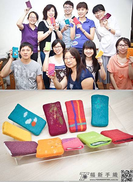 『羊毛氈』這是週一復興中學的老師們來幅新手織製作的羊毛氈手機套。大部分的老師們都是第一次作羊毛氈,卻都做的很棒喔 ~