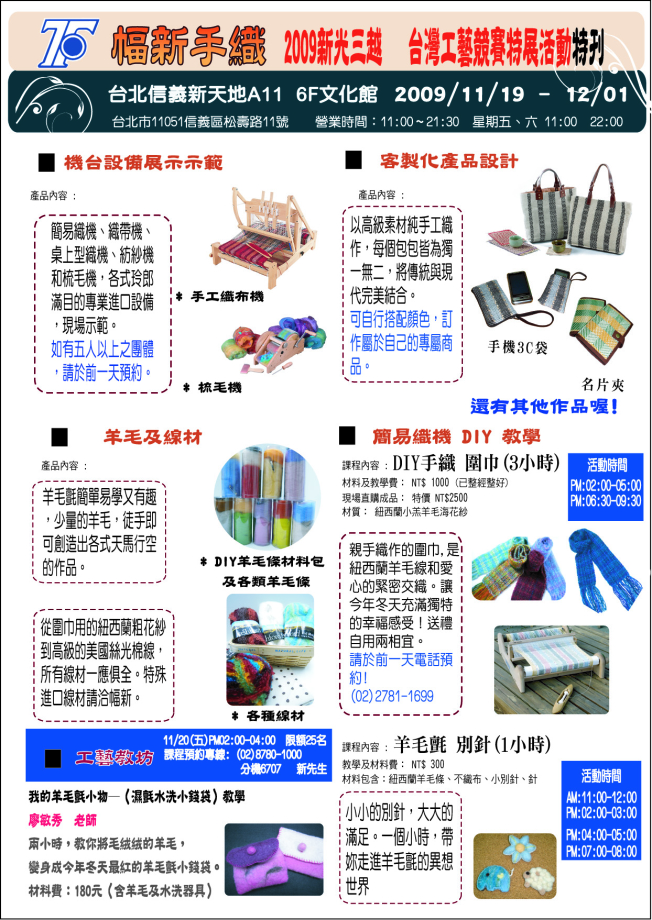 如果大家有任何問題,歡迎來信 / 來電 幅新手織 (02) 2781-1699 洽詢。